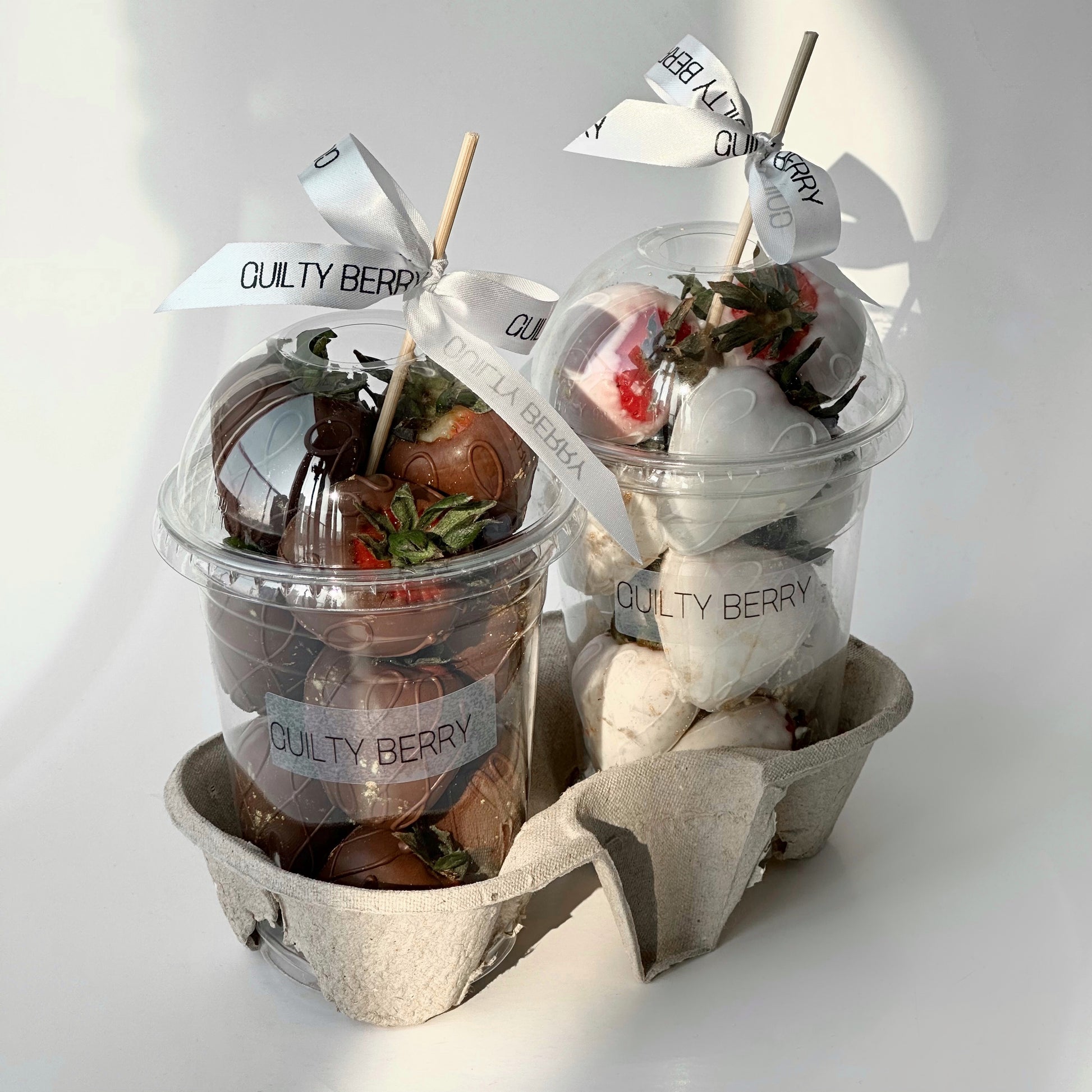 Enjoy a cup of chocolate-covered strawberries dipped in rich chocolate with delicate decorations. Each bite is a perfect blend of sweetness and elegance. Treat yourself or someone special to this delicious delight today! Perfect for any occasion, from picnic with friends to casual city walk.
